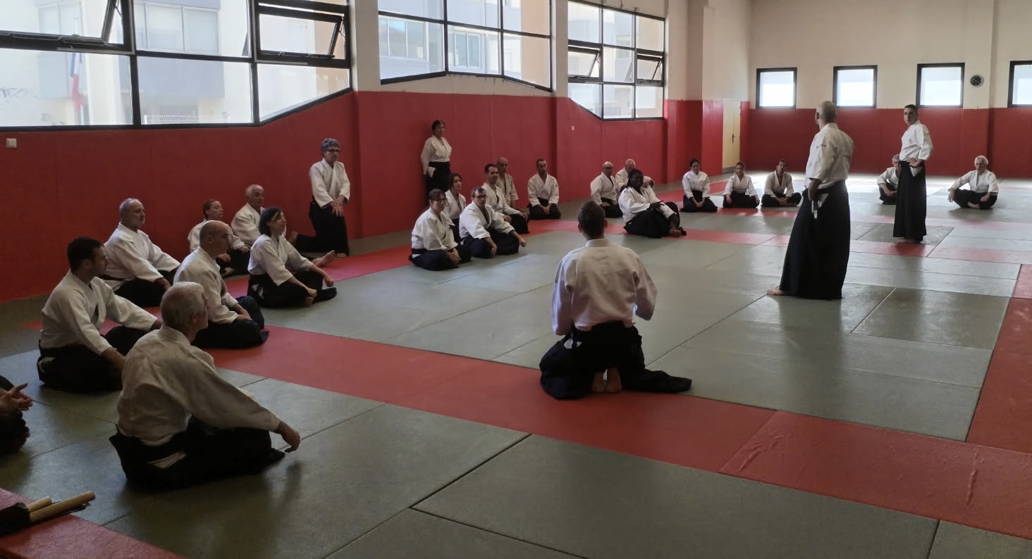 - à Sète (34) une vingtaine de participants : coanimation de Patrick Aubert et de Gérald Garzonio, tous deux 5e Dan, assistés par d'autres membres du CTR tels Jean-Jacques Cheymol et Michaela Fernandez, 6e Dan, Cyril Dejean, 5e Dan, et Olivier Devaux, 4e Dan. Belle participation aussi de nos jeunes du Pôle Espoir!